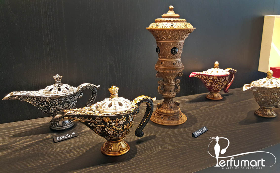 Besides the perfumes, the store also works with incensories and pure incense, keeping the traditions that involve since the environment purification to the simple act of showing respect for the visitors. And each one has its purpose: the ones with roses or fruits are good for weddings; the ones with sandalwood and woods (such as oud) are applied in worship or meditation; the ones with amber or musk are used to warm love encounters.